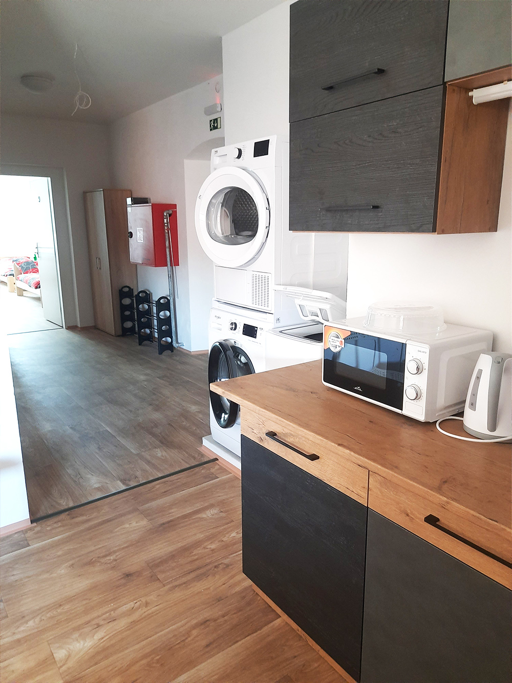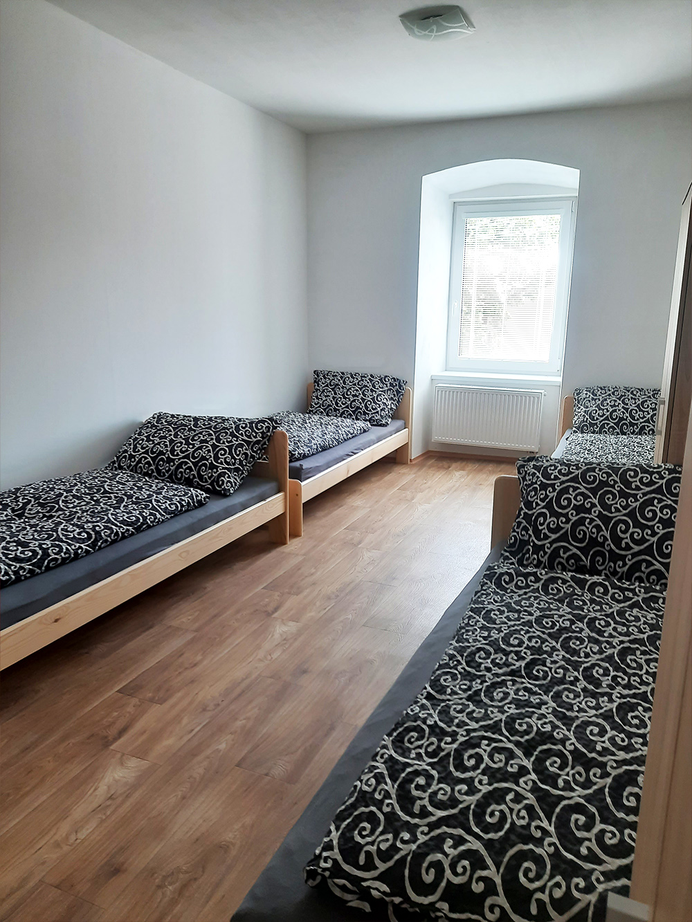 Nabízíme dlouhodobé i krátkodobé ubytování v soukromí. Nabízíme pokoje po 5, 4, 3 a 2 lůžkách. Možnost vlastního praní a sušení prádla, WI-FI na všech pokojích zdarma, možnost parkování před ubytováním. Oddělené toalety i sprchy. Společná kuchyňka s vybavením: sporák, vařič, varná konvice, mikrovlnka a lednice.